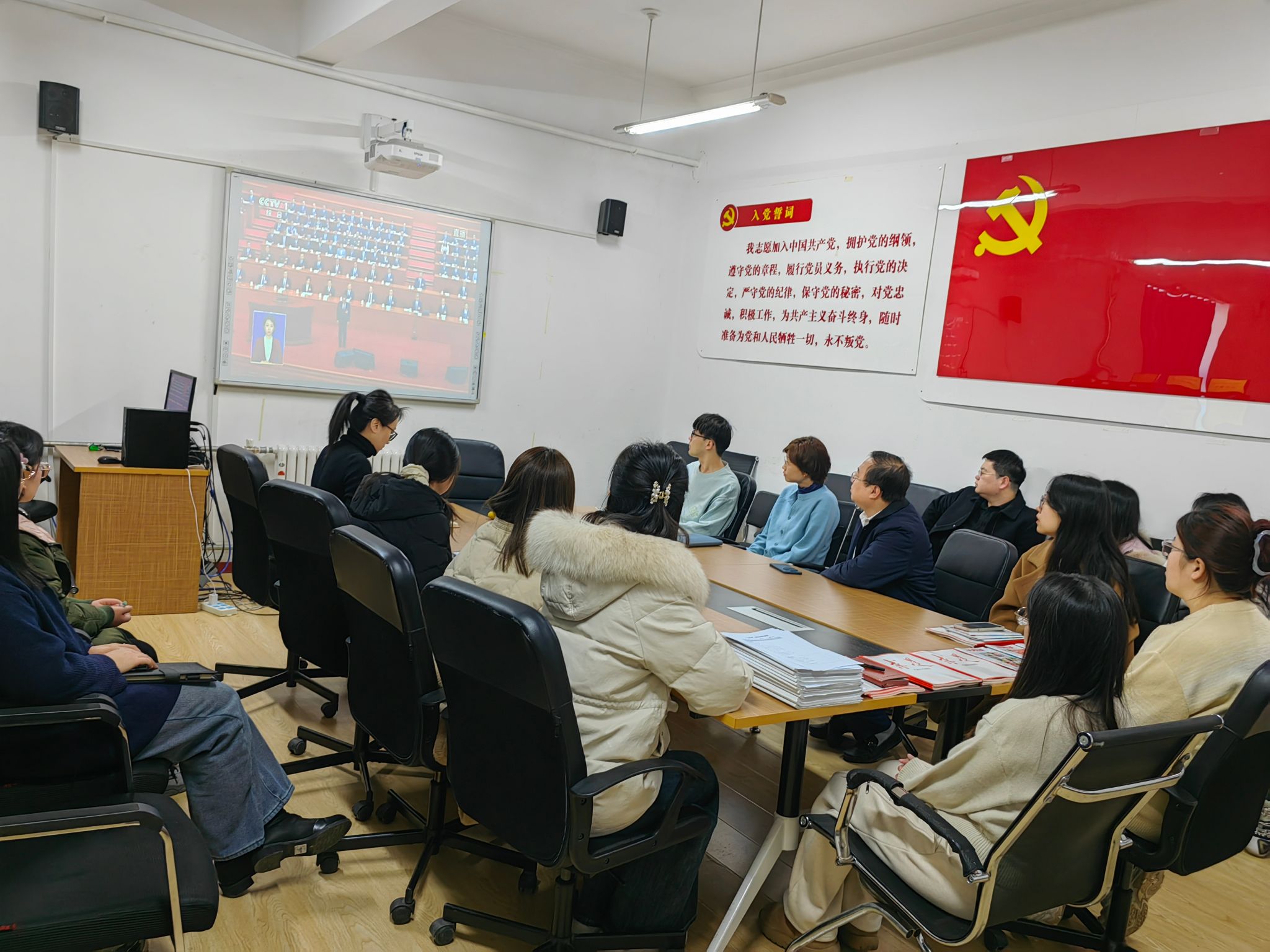 2025年3月5日上午9时,第十四届全国人民代表大会第三次会议在北京人民大会堂隆重开幕。MK(中国)一站式服务官网党委组织学院党员干部在物理楼422会议室集中观看开幕式直播,认真聆听国务院总理李强作政府工作报告。学院党委委员、各党支部书记和党员代表参加活动,其他师生通过直播形式自行观看。
