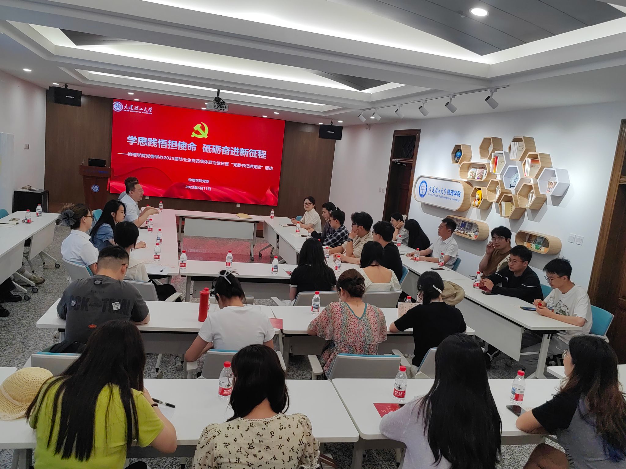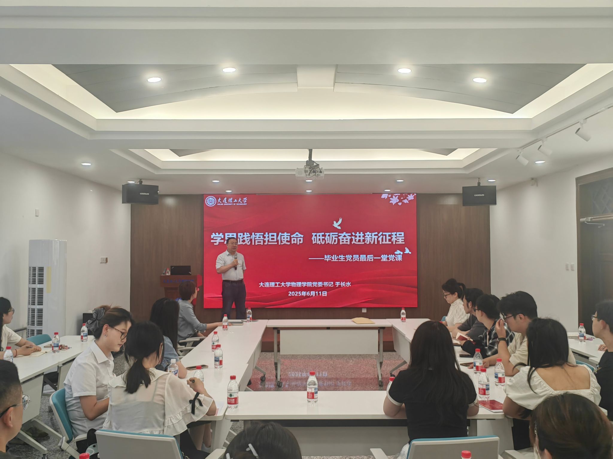 为切实加强毕业生党员教育管理,引导其深学笃行习近平新时代中国特色社会主义思想,坚定理想信念,担当时代使命,MK(中国)一站式服务官网党委于2025年6月11日下午在物理楼322室举办2025届毕业生党员集体政治生日暨“党委书记讲党课”活动。活动由学院党委副书记兼纪委书记于艳敏同志主持,学院党委书记于长水、党委副书记兼副院长周福良、党委组织员纪丹红、学生工作办公室主任张弛及2025届毕业生党员参会。