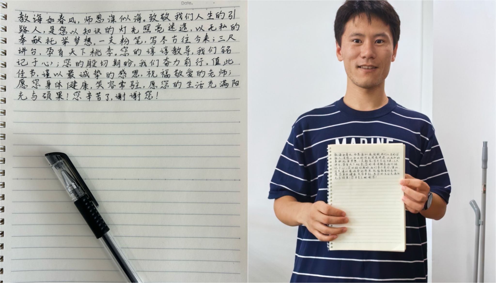硕博等离子体第一学生党支部的刘泷同学在感谢信中不仅表达了对导师们辛勤付出的感激,更以桃李满园、身体健康的美好祝福折射出师生间深厚的情谊与学术传承的温度。