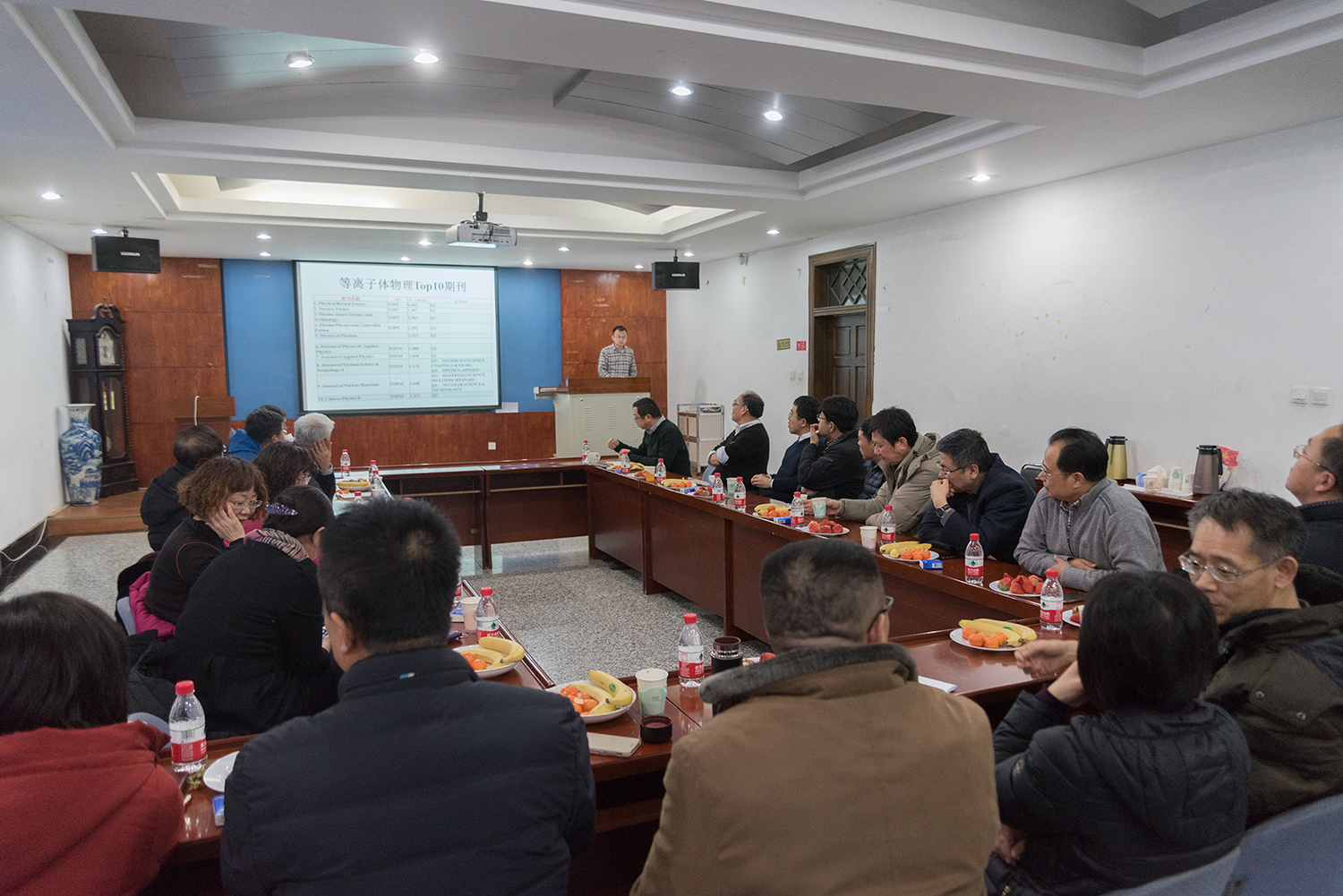 会议由院长赵纪军主持并做主旨报告《第四次学科评估结果分析及我们该如何应对》。报告详细分析了我校物理学一级学科在近两次学科评估中的排名走势,并结合本次评估中的各项指标性数据,探讨了当前物理学科建设工作中存在的问题。针对学科存在着“国家级人才数量不足”“缺乏省部级以上科研团队”“获得的科技奖励少”“ESI被引论文数量少”“发表在物理类高水平刊物的论文少”等一系列问题,提出了“继续引进和培养优秀青年人才,积极冲击各种国家级计划人才”“多渠道争取保持物理学科的硕博招生名额,同时提高研究生培养质量”“鼓励师生发物理类刊物及高被引论文”“组织申报省部级奖励,包括与外单位联合申报”“积极争取规划教材,注意积累教学相关各项指标”的5项基本对策,得到在场教授们的广泛认可。