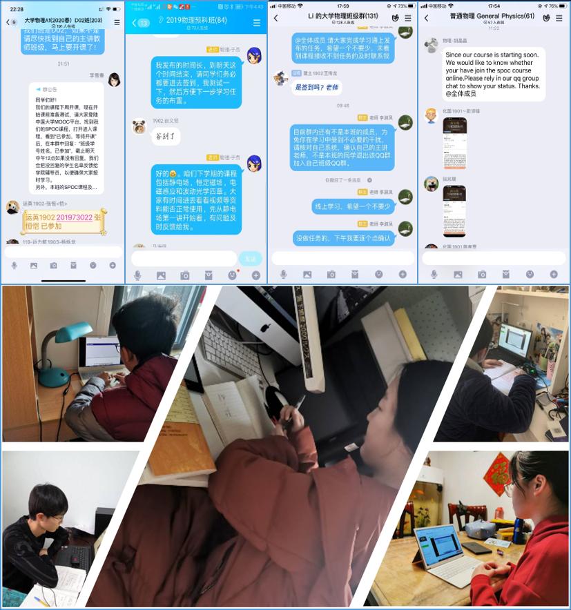全范围的云端教学对教学团队来说是一次全新的体验。两位青年教师今年第一次上课,全程在线完成了备课、出题和讲课的“初体验”;稍微年长的老师们花了更多的时间熟悉平台和软件,为保持与学生的沟通顺畅,必要时还会让家人帮忙。预科班主讲教师于杰针对预科班学生的时差问题,在上课时间上采取了弹性授课方式;依托我校全英文普通物理独立SPOC,面向国际班和DUT-UCI JP班的全英文线上授课也已有序开展。