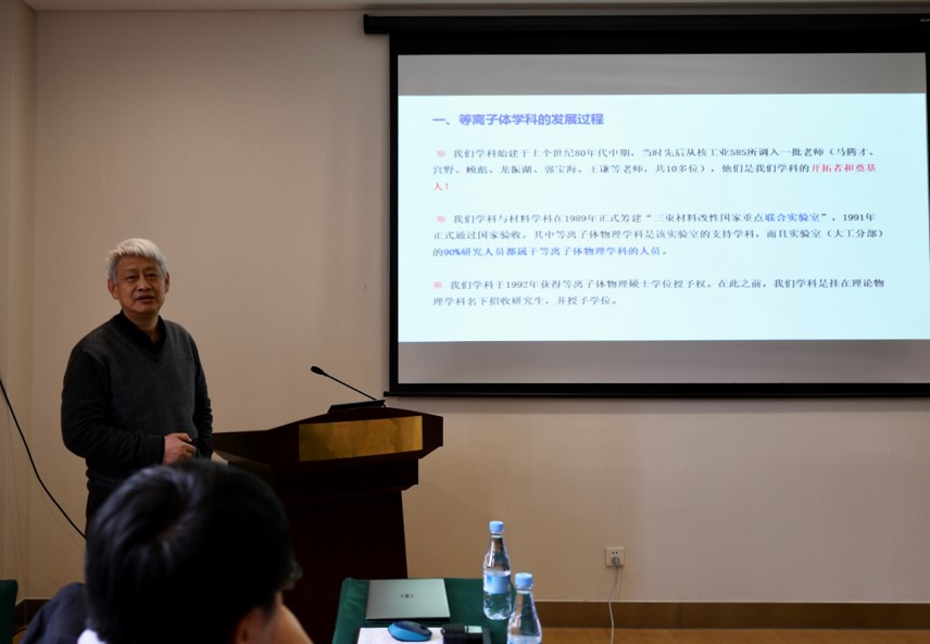 2020年1月11日,MK官方网站等离子体物理学科发展研讨会顺利召开,等离子体物理学科教职工参加了会议。会议开始MK(中国)一站式服务官网院长赵纪军教授宣读“关于MK(中国)一站式服务官网等离子体科学与技术中心人事调整的决定”, MK(中国)一站式服务官网党委书记王正汹教授兼任中心主任,高飞教授、桑超峰教授、冯春雷高级工程师分别任中心副主任,王奇高级工程师和张钰如副教授为中心秘书。王正汹教授作为中心主任进行发言,他简单介绍了中心换届的背景,明确了中心新的领导班子的任务,并表态将会通过中心凝聚整个学科力量,促进学科发展。高飞教授对等离子体中心近十年的状况进行了详细汇报,包括中心成员年龄构成、中心承担科研项目数据、中心各课题组实验室分布以及现今面临的主要问题等。