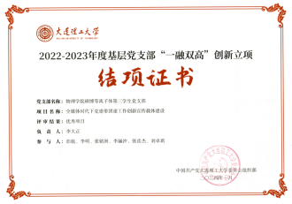 MK(中国)一站式服务官网硕博等离子体第三学生党支部在2022-2023年度大连理工大学基层党支部“一融双高”建设创新立项验收工作中以“全媒体时代下党建带团建工作创新宣传载体建设”项目获评“优秀”。