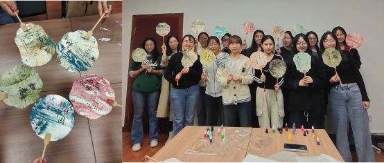 在迎新环节结束后,活动进入第二项——漆扇制作。赵博书记向大家讲解漆扇的文化历史、制作技艺及其背后的艺术价值,使同志们深刻感受到这一传统手工艺的独特魅力。接着,大家亲自动手,从挑选材料到设计图案,用心制作属于自己的漆扇,将对祖国的热爱与祝福融入每一寸扇面之中。