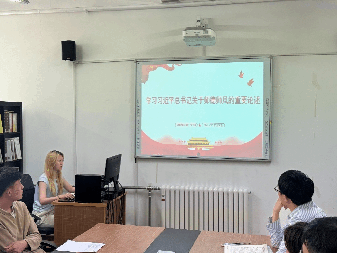 会议伊始,张宇同志简述硕博等离子体第二学生党支部的基本情况,随后,由王瑛琪同志开展学习习近平总书记关于师德师风的重要论述主题党课。在党的二十大报告中,习近平总书记再次强调,要加强师德师风建设,培养高素质教师队伍,弘扬尊师重教社会风尚。筑牢师德底线,做有情怀有担当的教育人,是当代教育工作者学习贯彻习近平新时代中国特色社会主义思想的实践举措。作为高校青年党员,要以优良作风为行为准则,筑牢思想防线,努力践行初心与使命。