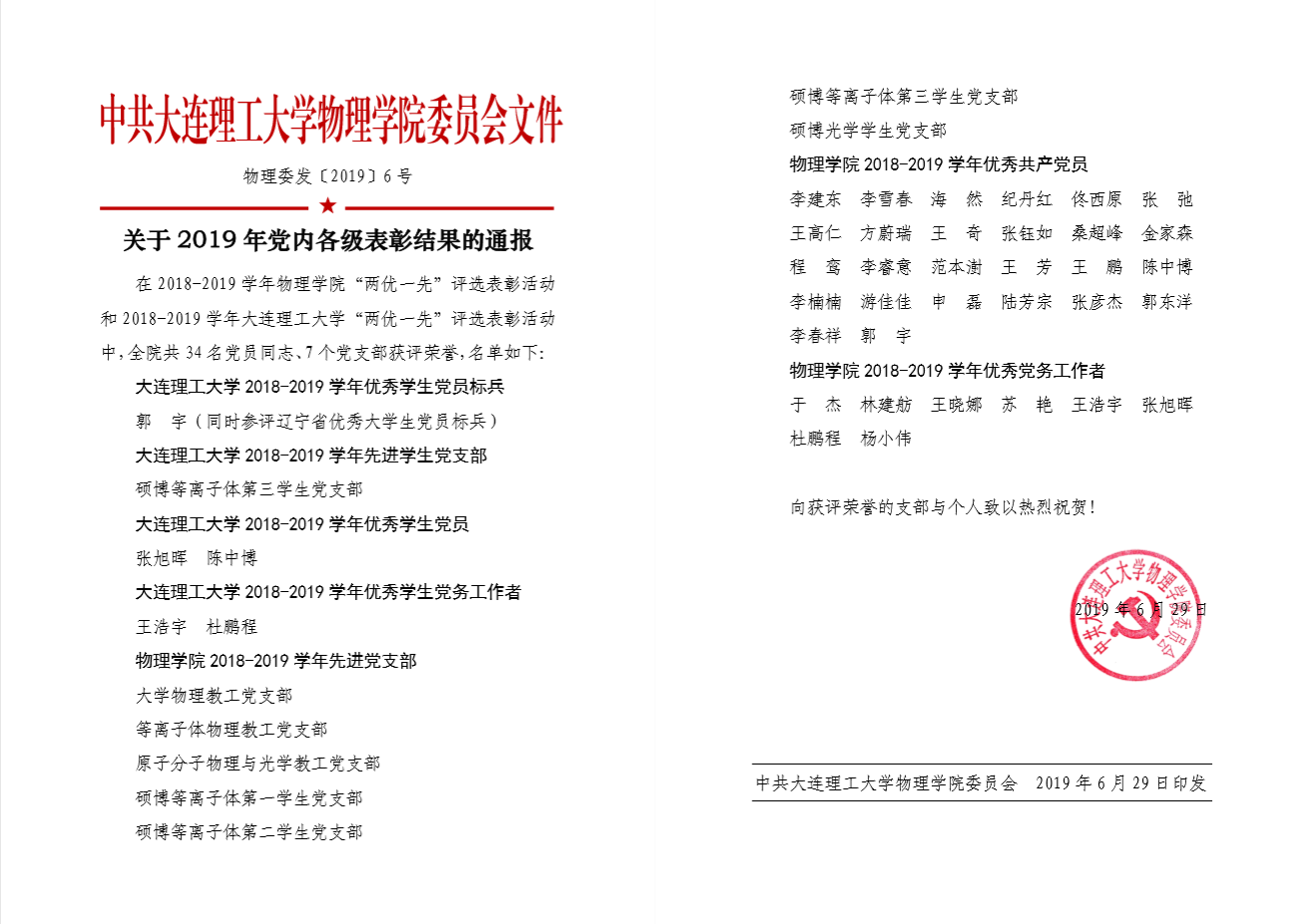 结合学校在全校学生党员中开展的“两优一先”评选表彰活动,MK(中国)一站式服务官网党委相应开展了学院层面的2018-2019学年“两优一先”评比活动,经各师生党支部及党员个人申报,共评选出学院优秀共产党员26名、优秀党务工作者8名、先进党支部7个。
