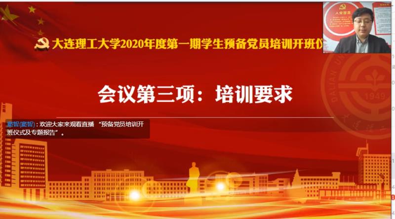 大连理工大学2020年第一期学生预备党员培训于5月27日开班,13:30第一讲邀请到了批驰援湖北医疗队成员,大连医科大学附属第一医院雷神山医疗队队员刘卓医生作为主讲人,题目为《在雷神山医院,我光荣入党》,我支部教师党员全部收看学习。
