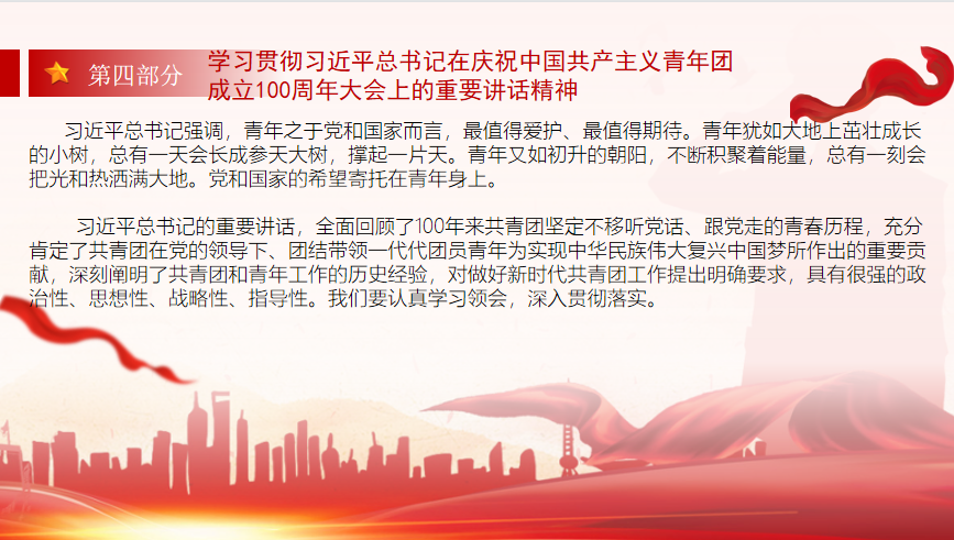 会议第二项,盛竹莹同志带领大家进行四个板块理论学习——学习习近平总书记在中国人民大学考察时重要讲话精神、学习习近平总书记给中国航天科技集团空间站建造青年团队回信精神、学习习近平总书记在庆祝中国共产主义青年团成立100周年大会上的重要讲话精神、学习习近平总书记给南京大学留学归国青年学者重要回信精神。习近平总书记不论是讲话,还是回信中,都内涵丰富、高瞻远瞩、情真意切、催人奋进,具有极强的政治性、思想性、指导性、实践性,体现出对人才的重视,希望每位青年都争做堪当民族复兴重任的时代新人。