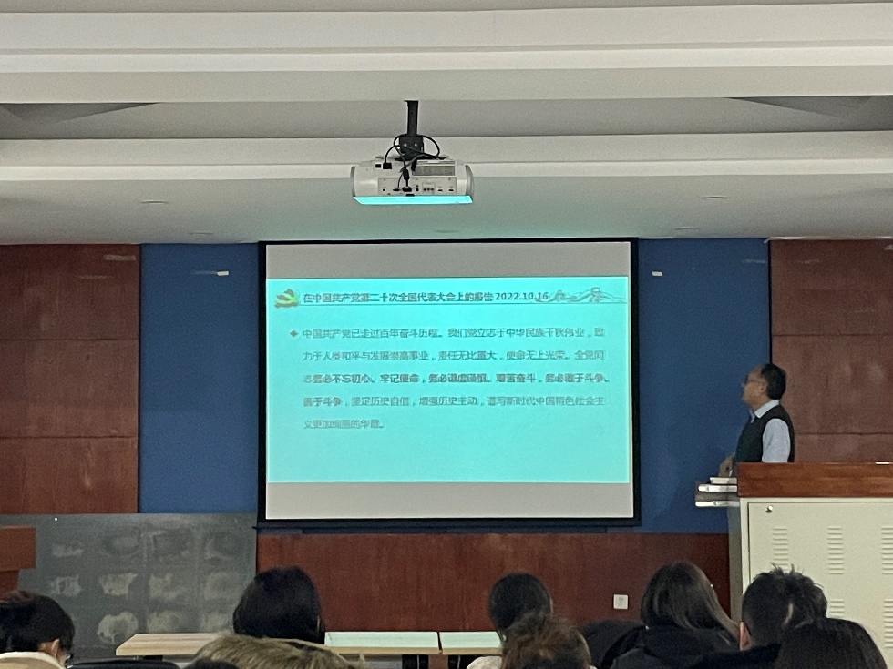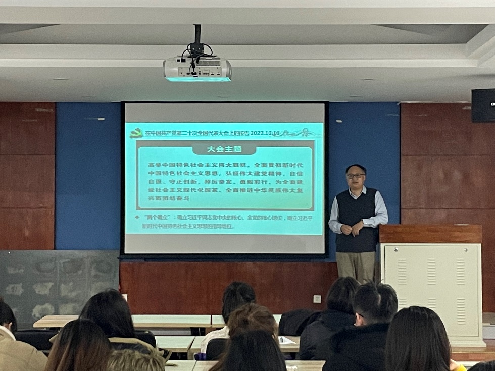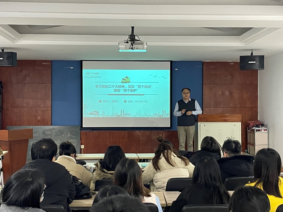 中国共产党第二十次全国代表大会于10月16日至22日在北京举行。为深入学习宣传贯彻党的二十大精神,按照学院党委部署,硕博等离子体第一学生党支部于2022年12月6日19:00在MK(中国)一站式服务官网322会议室举行主题党日活动,特邀MK(中国)一站式服务官网副院长杨德正老师为支部讲授《学习党的二十大精神,坚定“四个自信”、做到“两个维护”》的主题党课。本次主题党课的参与人员为全体党员同志、支部发展对象和入党积极分子。