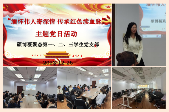 有一种怀念,穿越时代风雨,挥之不去;有一种思想,历经百年传承,活力依然。为纪念毛主席诞辰130周年,硕博凝聚态第一、第二、第三学生党支部采用线上线下相结合的方式,于2023年12月26日下午在科技园C座510会议室举办了“缅怀伟人寄深情,传承红色续血脉”主题党日活动。