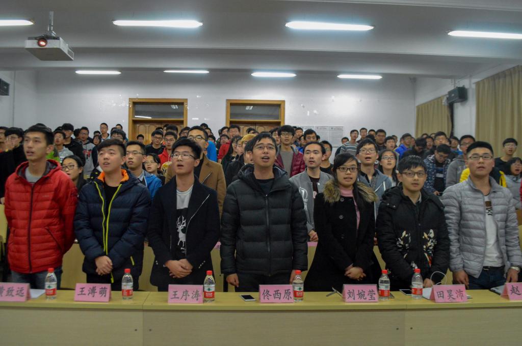 团校培训开始,首先奏唱团歌。现场歌声嘹亮,气势昂扬。而后佟西原老师上台为同学们讲述他对团学工作的理解和对大家的期望。首先,他抛出三个问题引出物理团学社的发展历程,并通过自己大学本科期间开展汶川地震募捐等活动和留校当辅导员的经历说明团学工作对自己的深远影响。接下来,佟老师讲述了物理团学最宝贵的三个特色,即较为完善的组织机构,以健美操精神为基础的文体活动传统精神及以家文化为核心的团队氛围。佟老师详尽的介绍使同学们对团学社的认识更加全面。