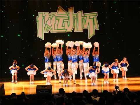 我院“物采飞扬”舞蹈啦啦操队的表现也同样毫不逊色,一上场就已带动了台下观众的情绪,出彩的开场造型更是瞬间引爆全场。物理亲友团呐喊助威的声音一浪高过一浪,在气势上就占据了压倒性的优势。大家齐声呼喊着“物采飞扬”每一位队员的名字,向他们送出鼓励与祝福。运动员们的表演自然不负众望,完美地诠释了“悦动”这个词语——“悦动”的音乐节奏,“悦动”的舞步,“悦动”的青春,“悦动”的灵魂,“悦动”的交织着的光与影,配合着评委和观众们“悦动”的心,在为在座的人们呈现了一场精彩绝伦的视听盛宴的同时,也将“悦动”这两个字深深地印在了在场者的内心深处。
