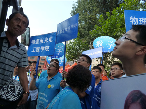 物理与光电工程学院秉承多年来敏学笃行的优良传统,以“逐梦青春,你我同行”为今年迎新工作主题,突出互帮互助的同学情谊在学生成长成才过程中的高度重要性,以学院培养出的“中国好寝室——兄弟寝”为着眼点,对迎新宣传品和新生报到环节进行精心设计;学院在迎新现场为2014级新生们准备了精美的“梦想卡片”,激励新一批的物理学子能够在大学四年中志存高远、不忘初心,努力发展自我,成就未来。在“物理蓝”的点缀下,物理与光电工程学院的迎新工作为新生和家长留下深刻记忆。