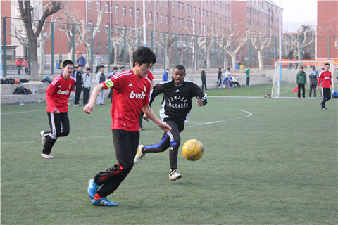 下半场比赛,国交学院队先发制人,8号队员顺利打入1球,场上比分1:0。MK(中国)一站式服务官网队不甘落后,奋起直追,7号队员吾提库儿单刀直入,一脚射门得分,将比分扳为1比1平。国交学院队在最后5分钟的比赛中发挥更加出色,连入两球后取得了3比1的领先优势。MK(中国)一站式服务官网队并没有放弃,但比赛时间有限,无法扭转失利的局面,最终以3比1的结果遗憾的输掉了比赛。