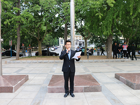 今年是“九·一八”事变84周年,在9月18日这一天举行“九·一八 勿忘国耻 振兴中华”,既是为了铭记历史,更是为了警示当代大学生。让同学们不要满足于安乐,而是要继续奋斗,不断的为中华民族的伟大复兴贡献自己的力量,相信2015级同学也会以实际行动做到这一点。