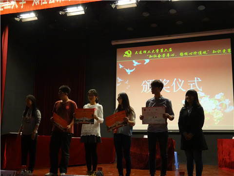 10月24号晚,由校“两组”学习部举办的“知社会荣辱心,扬核心价值观”第六届党章党史知识竞赛于西综B301圆满落幕。进入决赛的13支队伍各有千秋,上演了一场精彩激烈的比赛,物理与光电工程学院由杜亚雯、李欣、杨校呈和赵沁华组成的1204代表队参加比赛,最终荣获二等奖。