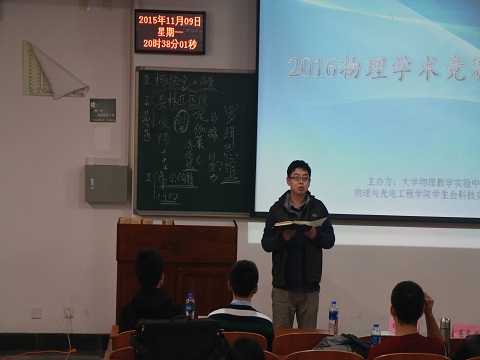 2015年11月9日,由物理与光电工程学院主办的物理学术竞赛宣讲会在西部校区综合教学二号楼举行。到场的嘉宾有大连理工大学物理教学中心的姜东光教授、滕永杰老师、白洪亮老师、第五、六届中国大学生物理学术竞赛中获得全国二等奖的参赛队伍队长杜石桥,王子潇和参赛队员、MK(中国)一站式服务官网学生会科技中心主任兼科技实践部部长闫兆鸿、学习部部长李春祥以及校团委部和校学生会科技部相关负责人。