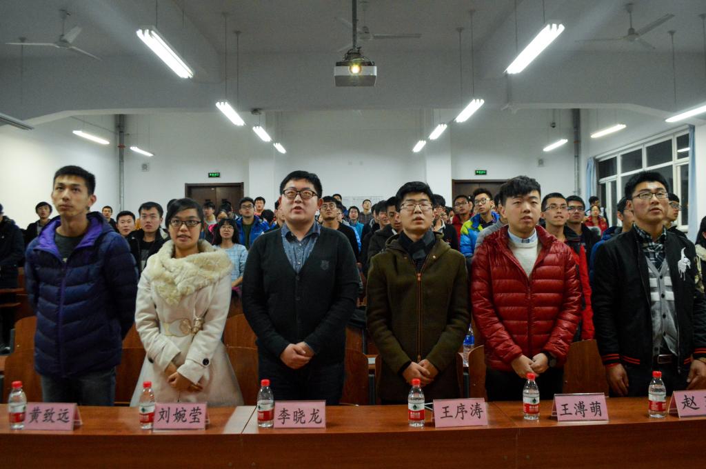 在本次大会正式开始前,为提高现场气氛,设有一个即兴演讲环节,同学们可以自由发言,时限为三分钟。在该环节中何浩、范凯旋、钟裕枫同学为大家分享他们对大学的感受。