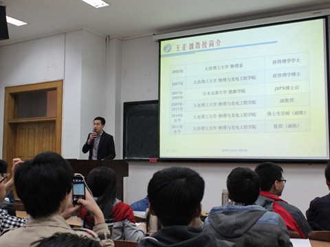 随后,在同学们热烈的掌声和期盼的目光中,王正汹教授走上讲台。他由自己的切身经历出发,讲述自己从学生时期至今的拼搏过程以及相关成就。制作精美的PPT,诙谐幽默的谈吐,无一不赢得在座同学们的阵阵掌声和欢笑。渐渐地,轻松愉悦的讲座氛围被推向了高潮。