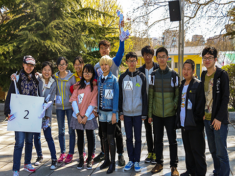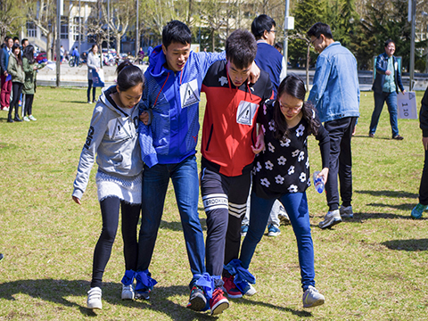 一开始进行的是简单的破冰环节。各队领队带领自己的队伍开始了简单的自我介绍,这一环节很快就使得大家熟悉了起来。在基本的团队建设结束之后,游戏环节正式开始。首先进行的游戏叫做“数字手环”,它很快就使得团队内部建立起了深厚的友谊,之后的游戏是“友谊的高塔说搭就搭”,这个游戏要求各队用扑克牌,吸管和胶带制作尽量高的,能承受一盒酸奶重量的高塔,各队都应用自己的奇思妙想搭建出了富有创意的扑克塔。前两项分别是速度与技巧的较量,下一项进行的则是“趣味运动会”。接下来进行的是“心有灵犀”,这个游戏考验了团队成员之间的默契和各人的应变能力。最后进行的一项是“奔跑吧,少年”这个游戏。