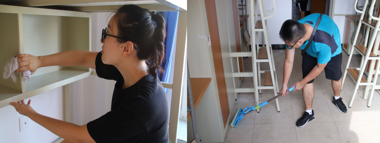 8月29日,距离新生报到还有两天的时间,MK(中国)一站式服务官网各个部门已经开始迎新的准备工作。上午8点,学院团学社全体骨干成员开始打扫学院2018级新生宿舍,同学们领着各自的任务开始检查床柜、擦拭阳台、清除灰尘、拖洗地板等。
