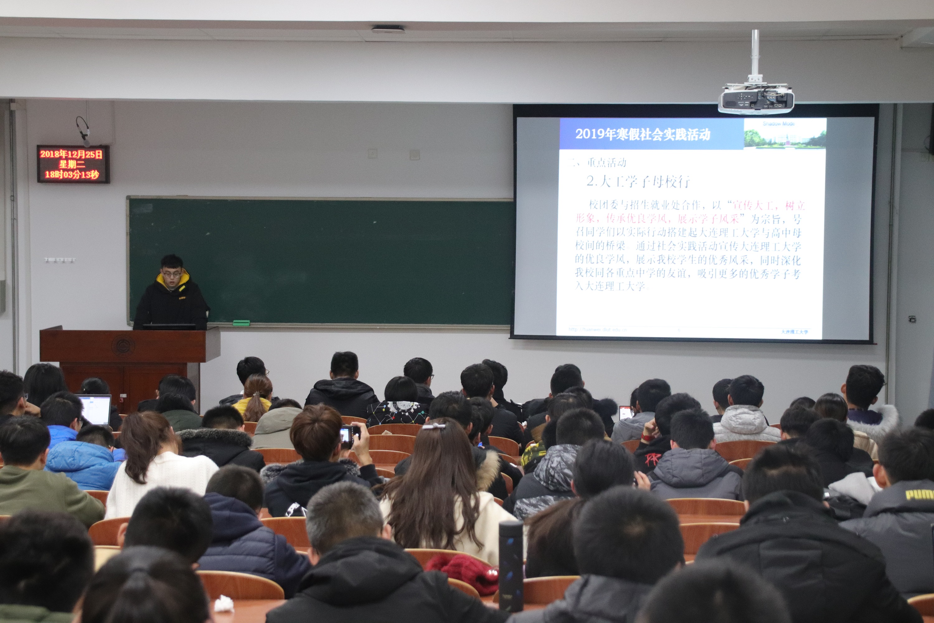 会议开始,郑旭东同学从总体精神出发,陈述寒假社会实践的意义和内涵,展示社会实践对大学生的积极作用,再向同学们详细介绍“寻访老校友·传承大工红色基因” 、“大工学子母校行“、“国情社情观察团”三个重点实践活动,并从“实践团队申报与立项”、“实践成果审核”、“实践团队,优秀个人和优秀指导教师的评优办法”三个方面进行深入的诠释,然后再系统地陈列社会实践的相关时间安排,并补充注意事项。陈凯林同学则对立项文件的写法以及相关注意事项进行更详细的补充说明。在提问环节中,现场气氛很活跃,许多在场同学纷纷抛出自己的问题,各位部长也是逐个耐心地向同学们解析并回答,解决同学们的疑惑。
