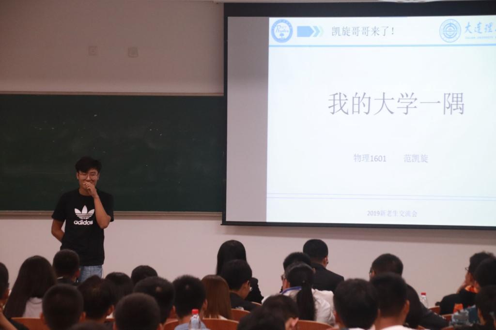 最后上台的2016级范凯旋建议在学习上合理分配时间、规划每一天,并介绍自身参加的大学活动如峰岚杯、祖国颂、山区支教,最后根据亲身体验,推荐了值得一试的美食。