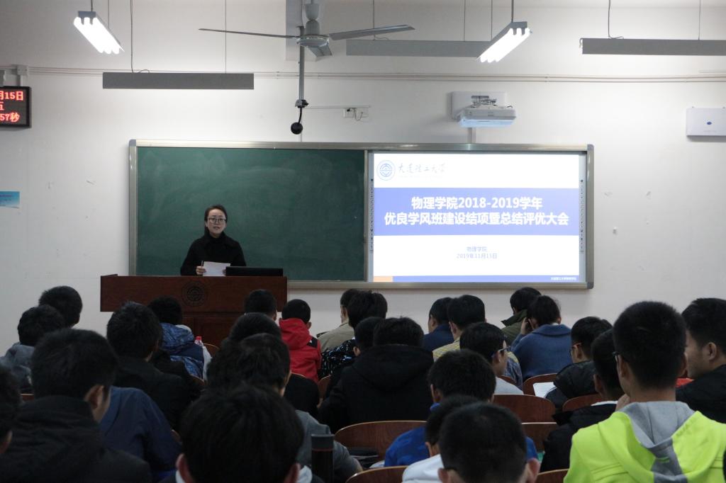 2019年11月15日晚8时,MK(中国)一站式服务官网2018-2019学年优良学风班建设结项暨总结评优大会于综合教学二号楼A301教室召开。本次评审团由学院党委副书记兼副院长周福良、物理1603班班主任王成林副教授、应物1801班班主任荆振国副教授、物理1702班班主任王丰副教授、物大珩1901班班主任张钰如老师、2018级辅导员张胜男老师和辅导员工作助理唐健璐老师组成。
