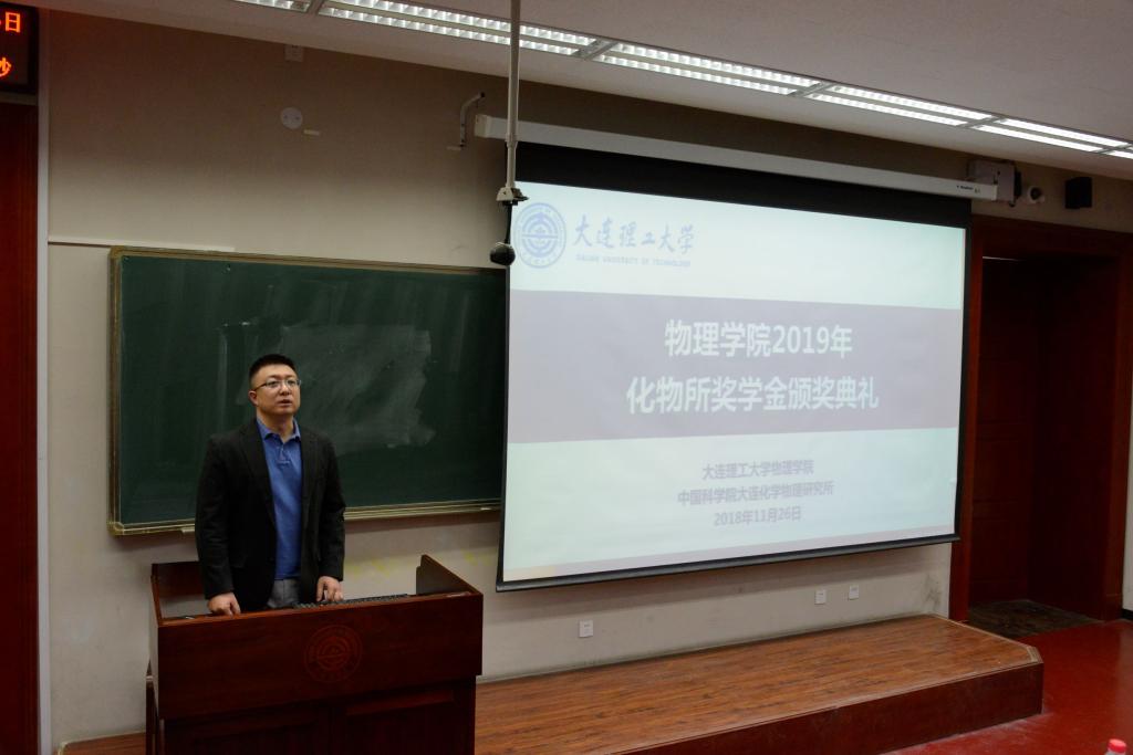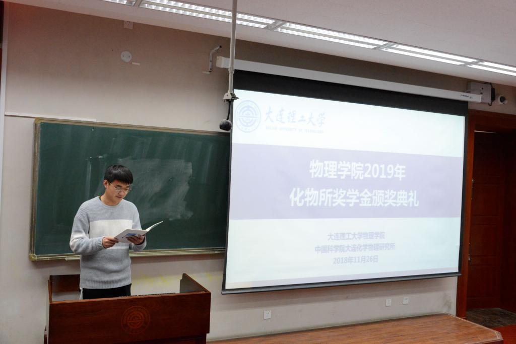 2019年11月26日中午12时,MK(中国)一站式服务官网化物所奖学金颁奖仪式于第一教学馆209教室顺利举行。本次会议我院邀请到化物所研究员熊川南、于晓、MK(中国)一站式服务官网2018级辅导员张胜男作为嘉宾,主持人为MK(中国)一站式服务官网副书记助理唐健璐。