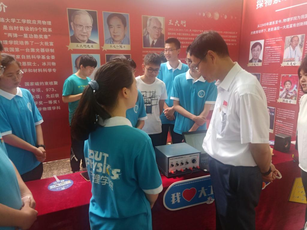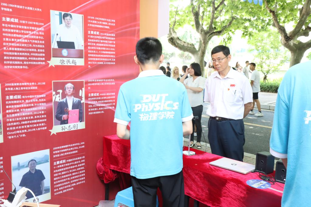 与其同时,学校领导高度重视此次活动,前来观看红色基因文化成果展并提出宝贵建议,在听过讲解员的讲解之后,校长郭东明院士表示:“希望同学们多关注应用价值,不能只看到这个原理是什么样就行,要想它能用在什么地方;不能只停留在理论层面上,同时也要紧跟时事;不能只停留在课本上,要多了解一下相关领域的前沿科研工作。”在听完郭东明校长的讲话之后,同学们表示:“我们会多关注应用方面,多看看能用在什么地方,多关注科研前沿。”征途漫漫,学无止境,物理学子必定会迈着坚定的步伐,传递大工红色基因,奋力投身科研事业。