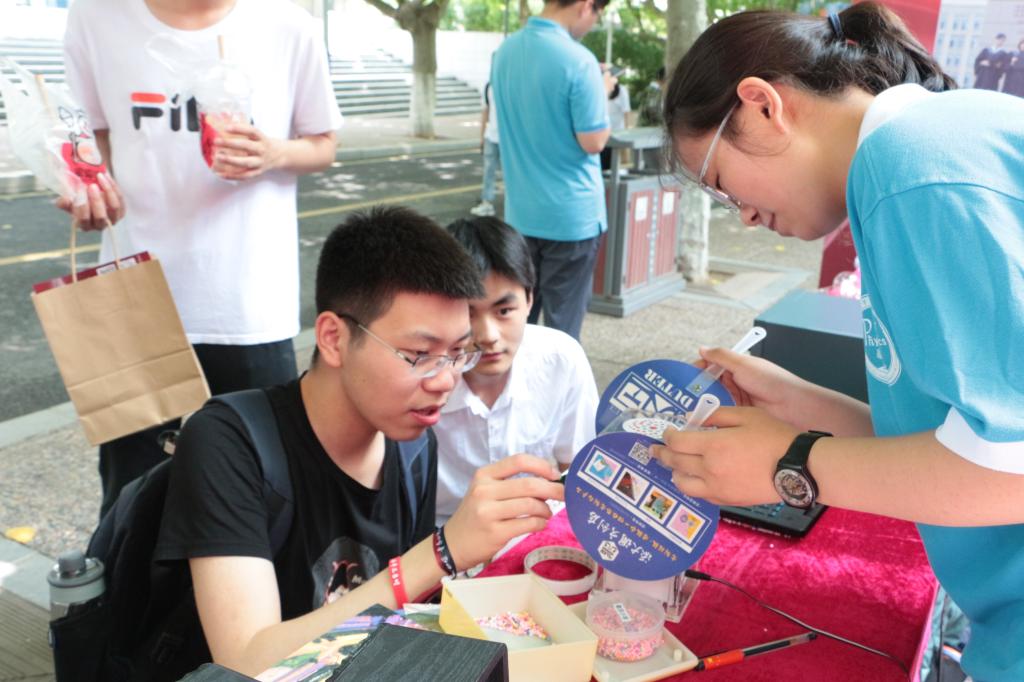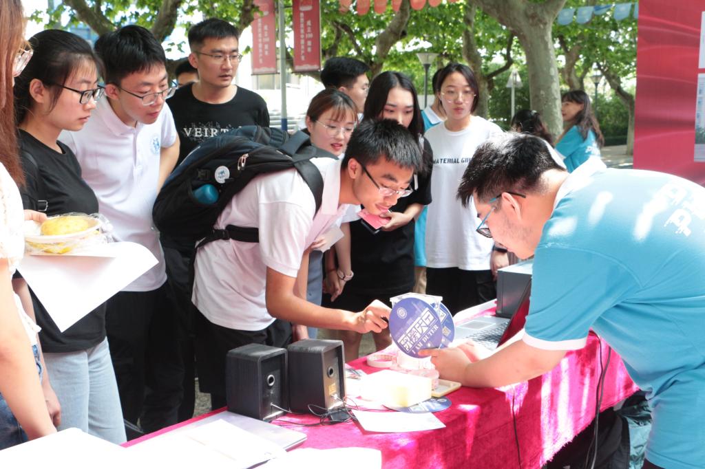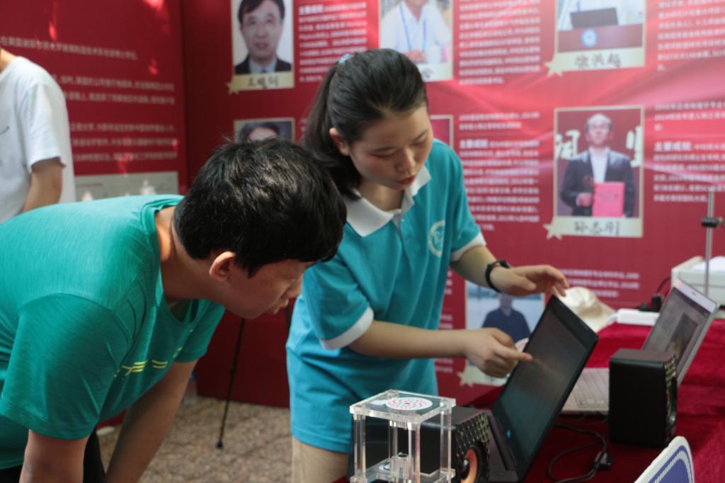 展览正式开始之后,参观的同学接踵而至,他们纷纷驻足参观激光监听、无线电能传播、声悬浮等实验仪器。在听过讲解员的讲解之后,许多同学也自己动手去操作仪器,在体验操作乐趣的同时也得到了赠予的小奖品。