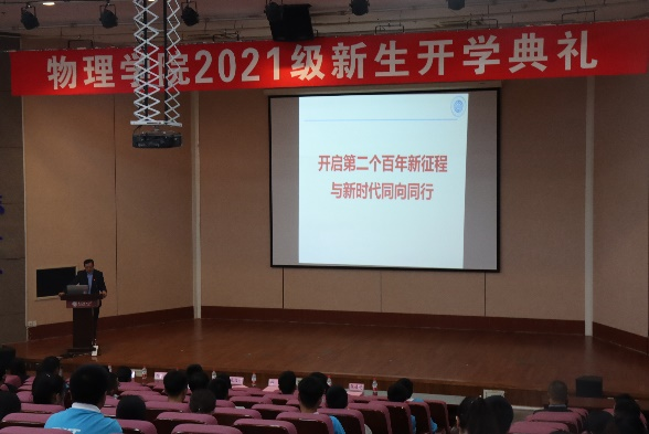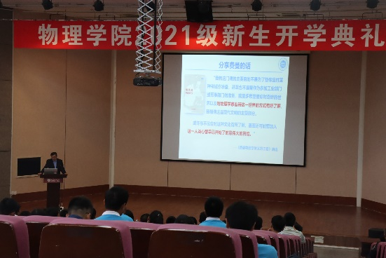 10月7日上午,MK官方网站2021级“院长第一课”在研究生教学楼报告厅隆重召开,其主题为“不负青春时光,体验物理之美。”在院长致辞上,赵纪军院长怀着澎湃的心情热烈欢迎2021级新同学的到来。