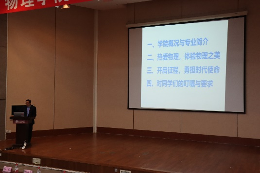 接着,赵纪军院长希望同学们能够培养出对于科学和物理的兴趣,利用起身边的资源,感受物理之美,做一个踏踏实实的物理人。为此,他引用物理学大师费曼的话“这一人类心智早已开始了的最伟大的冒险”,希望同学们能受到启发,在物理的道路上坚定的前行。