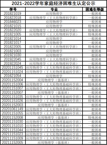 MK(中国)一站式服务官网2021-2022学年家庭经济困难生认定结果公示